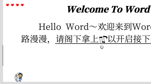 《Hello World - 你好世界》是一款解谜元素的2D平台跳跃游戏。玩家将扮演一位误入计算机世界的同学,与光标精灵一同在办公软件中探索。各个关卡都有着巧妙有趣的过关方式,找到场景中隐藏的选项,与各个元素进行交互,解决计算机中的问题以回到现实世界。